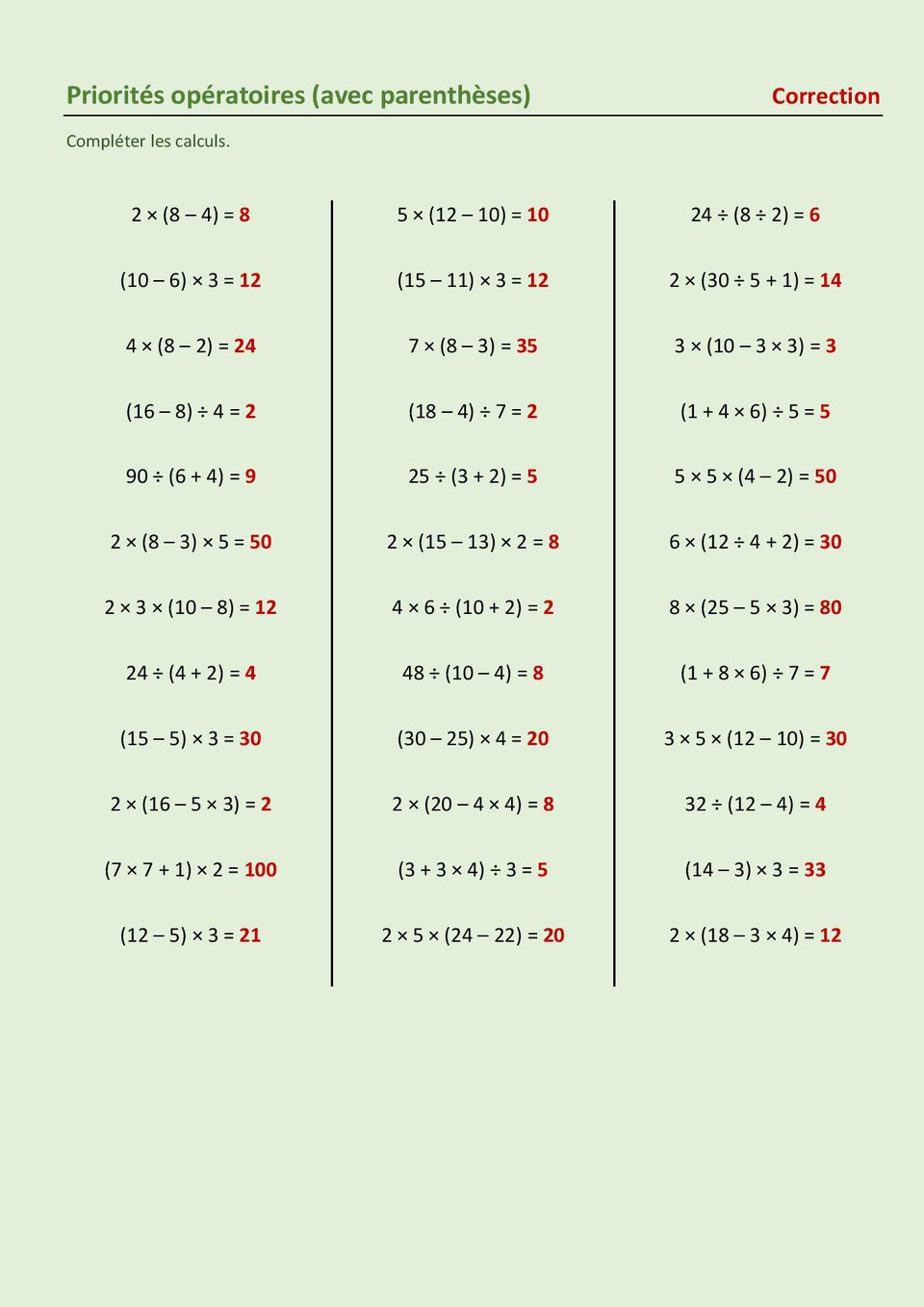 - Quand il y a plusieurs niveaux de parenthèses, on commence par effectuer les calculs entre les parenthèses les plus intérieures.