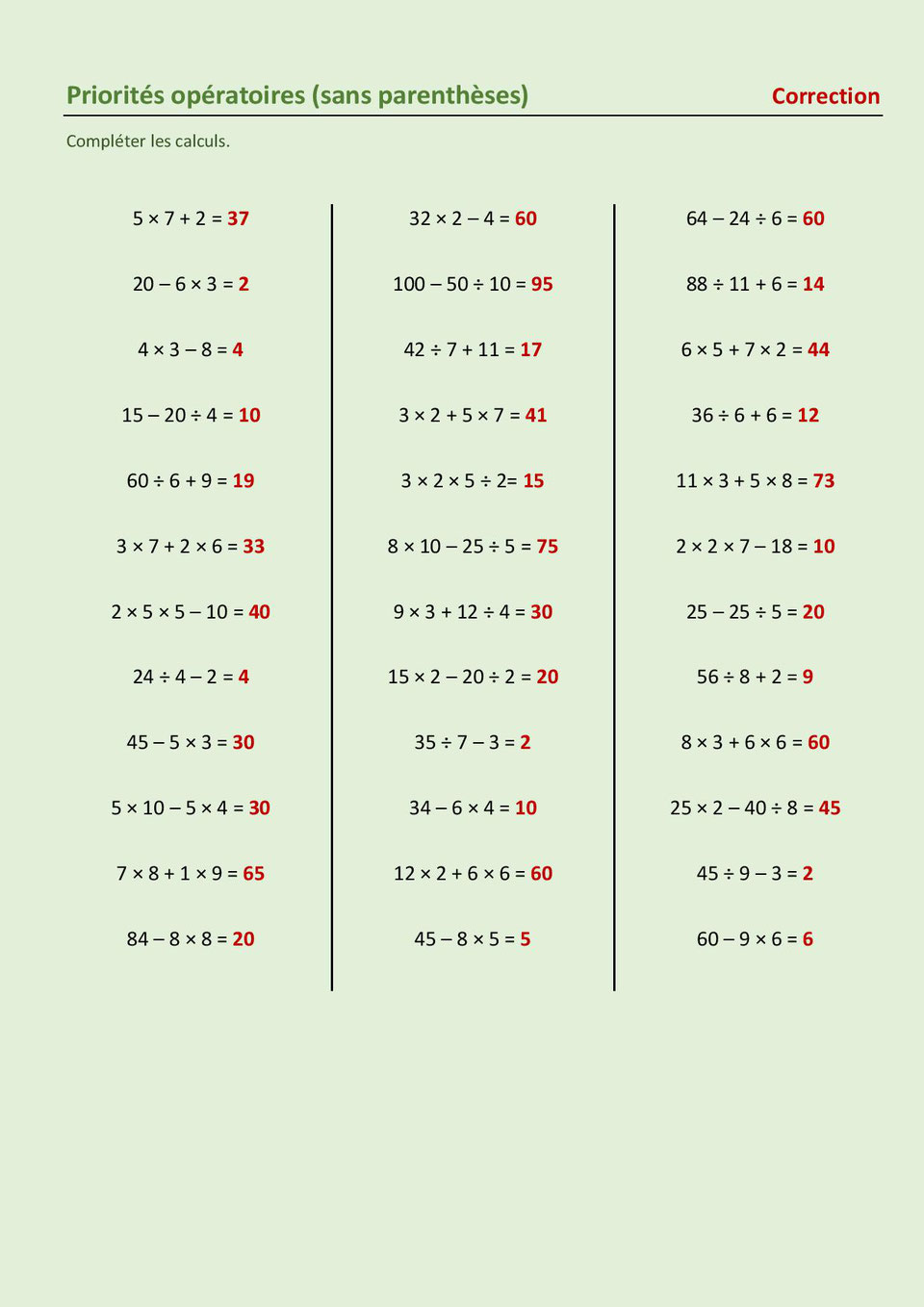 - L’opération prioritaire (Sans calcul et Chronométré)