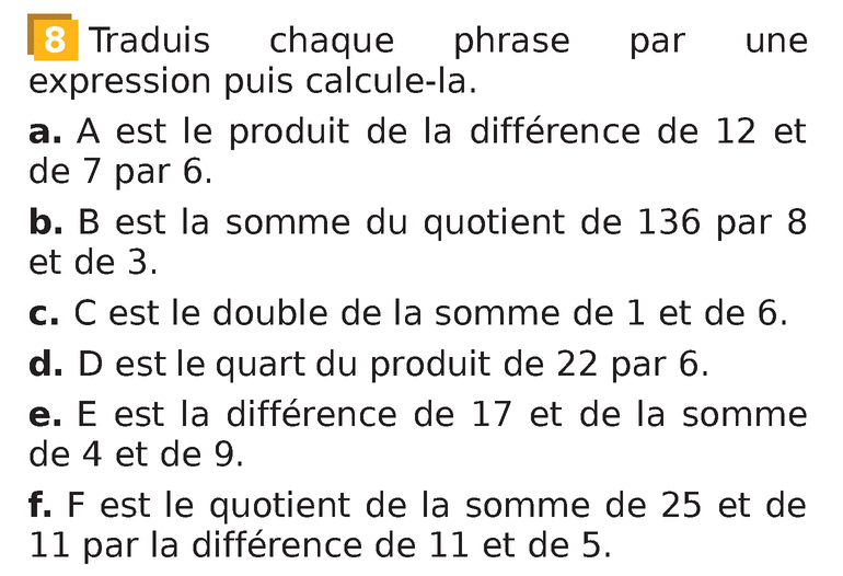 Si la suite de calculs sans parenthèses ne comporte que des additions et des soustractions (ou que des multiplications et des divisions), on effectue les calculs dans l’ordre de la gauche vers la droite.