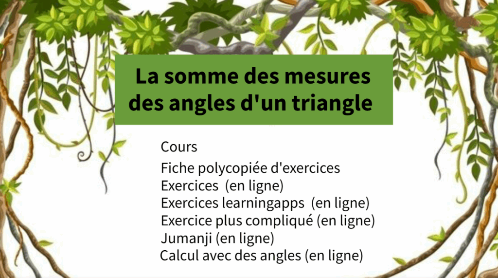 Dans un triangle, la somme des mesures des trois angles est égale à 180°.
